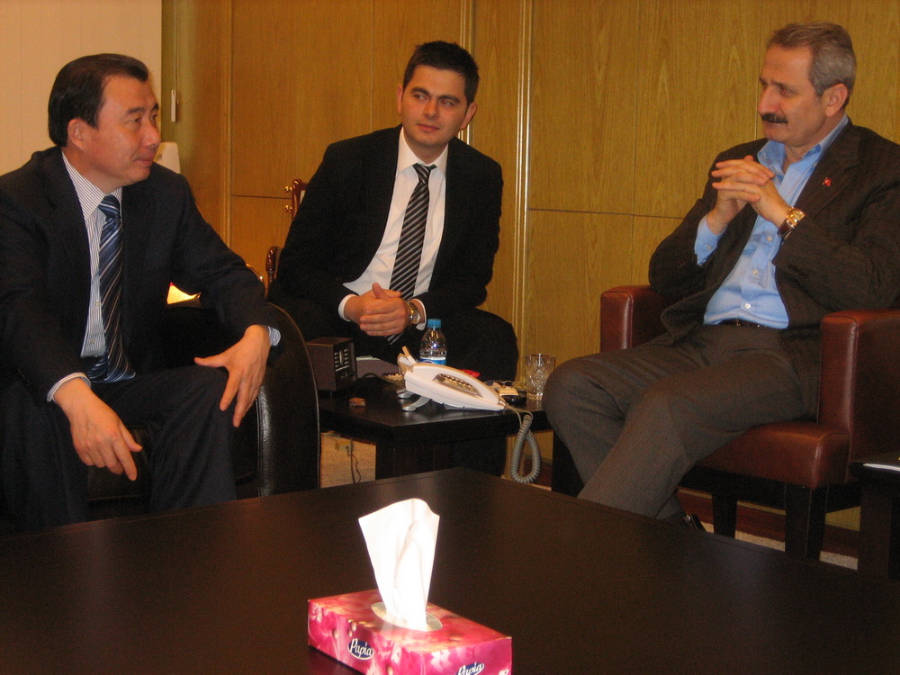 In the afternoon of 23rd Jan. 2010, after the close of Sinoma-EC WHR and Cement technology Turkey introduction meeting, General Manager Liu Zhijiang of Sinoma Group visited Turkey Ministry of Foreign Trade and Economy in the company of Chairman Zhang Qi of Sinoma-EC and called on Turkey Minister of Foreign Trade Mr. Zafer CAGLAYAN.